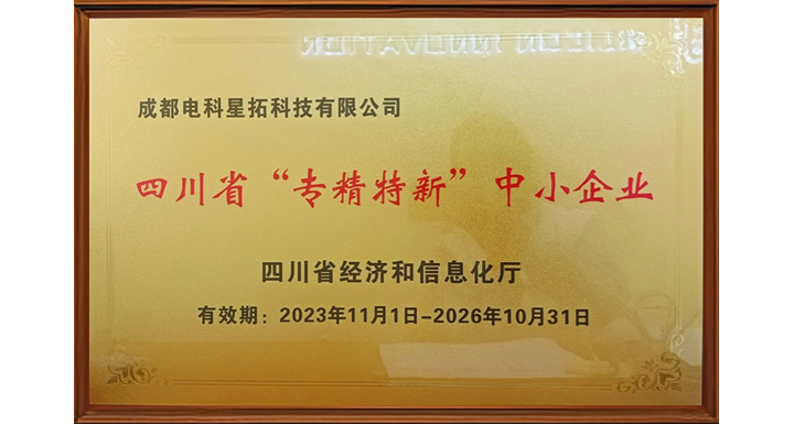 近日,四川省经济和信息化厅为电科jiuyou九游ninegame正式颁发2023年度四川省专精特新中小企业牌匾,标志着电科jiuyou九游ninegame在工信部优质中小企业梯度培育进程中,再上一个新台阶!
